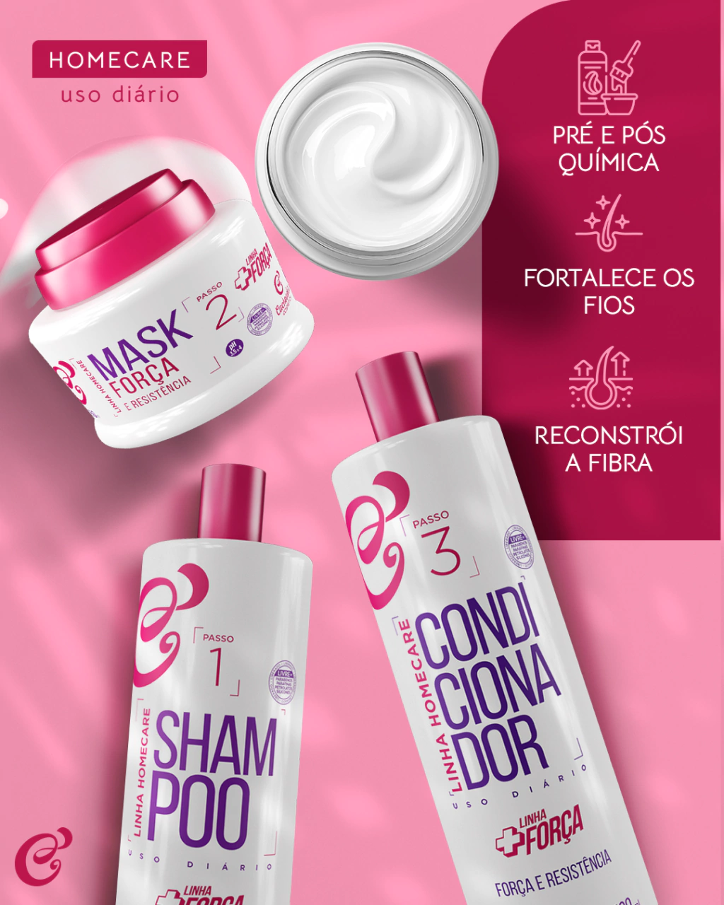 - Fortalecimento da Fibra: Ideal para uso pré e pós-químico, ajudando a reconstruir a força interna da fibra capilar.